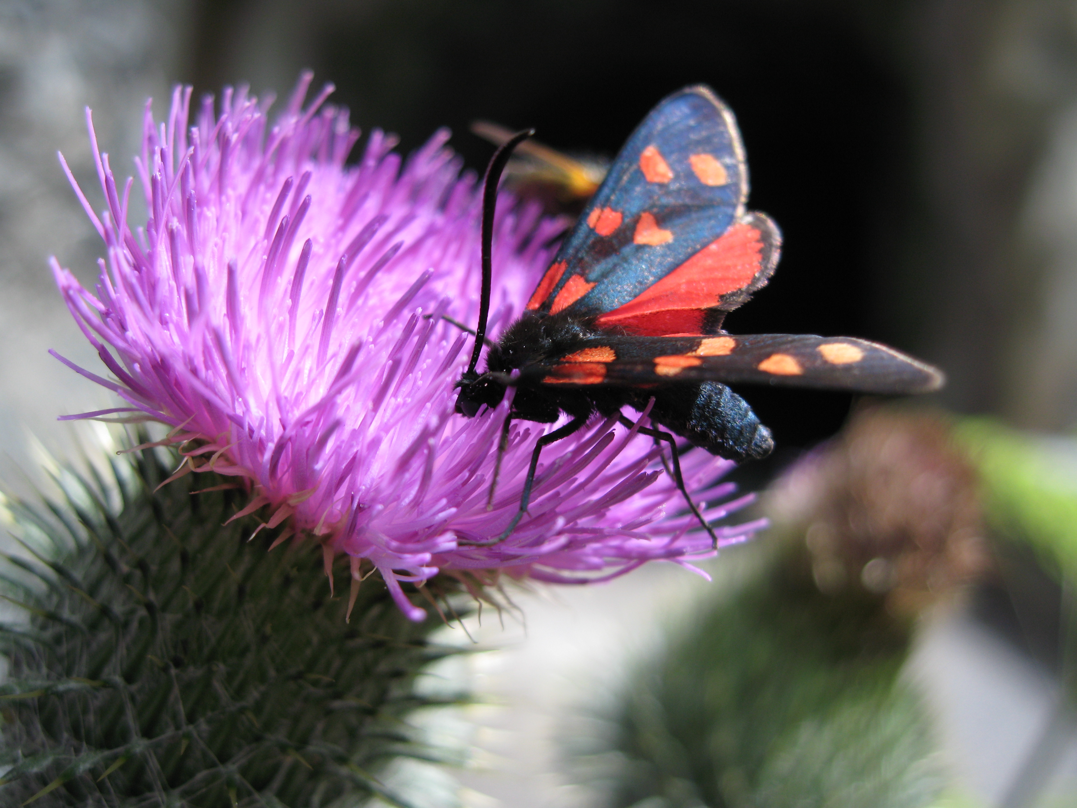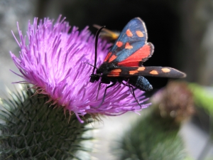 | Widderchen an einer Distel Alter Zügenweg, historische Strasse durch die Zügenschlucht Juli 2008 |